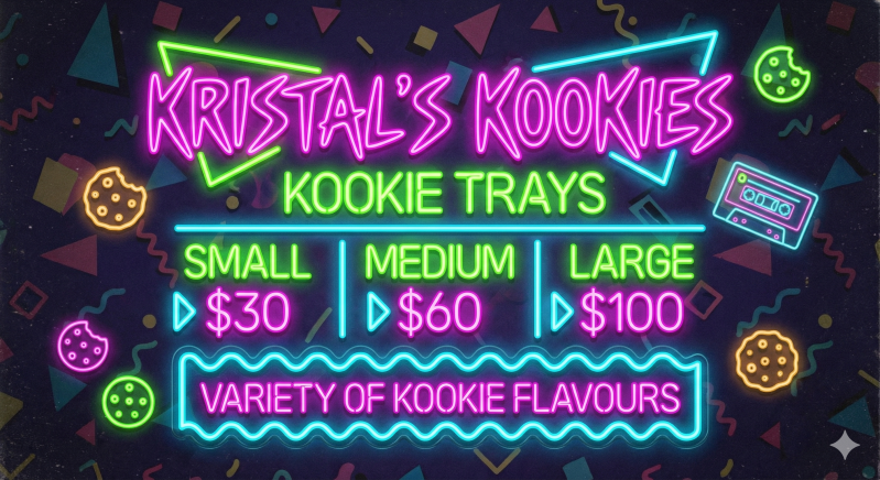 Indulge in our small, medium, and large cookie trays, perfect for sharing and celebrating! Each tray is filled with an assortment of different flavour kookies, crafted to satisfy every taste. Whether you’re hosting a party, treating your coworkers, or simply craving a sweet variety, our cookie trays are the ideal choice. Choose from classic favourites like chocolate chip, oatmeal raisin, and sugar cookies, or explore unique options to surprise your guests. No matter the size of your gathering, we’ve got the perfect tray to match. Order now and treat yourself or someone special to a delightful kookie experience!